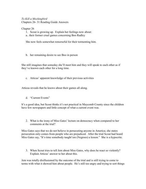 Read Online To Kill A Mockingbird Study Guide Answers 26 31 Epub